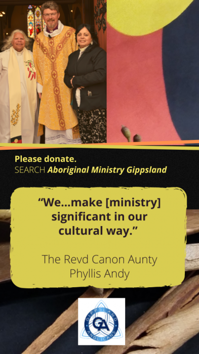 Aboriginal Ministry in Gippsland is delivered by two ordained Aboriginal women - the Revd Canon Aunty Phyllis Andy and The Revd Kathy Dalton. They are available to support Aboriginal people and families across Gippsland, and they are sometimes called to travel across Victoria and interstate to support families in times of Sorry business. Their work in community is culturally safe, extensive, flexible, caring and responsive.